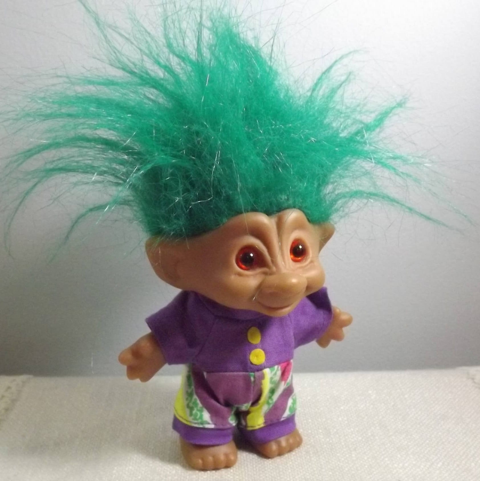 Vintage Treasure Troll Doll With Christmas Green Hair Orange Etsy